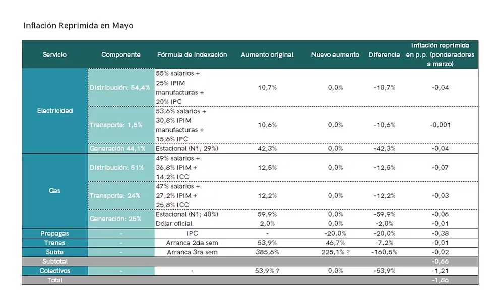 Es por eso que en mayo se definió una suspensión del los incrementos previstos en tarifas de luz, gas, impuesto a los combustibles y boletos de colectivos. También se sumó la medida que obligó a las prepagas a retrotraer precios que estuvieran por encima del IPC.