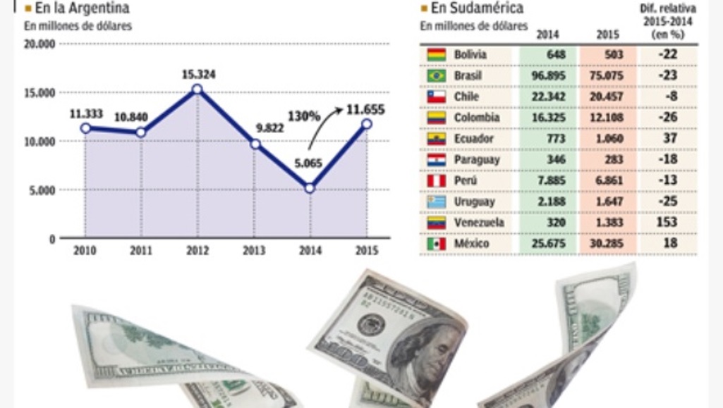 Según el informe que publica todos los años la Comisión Económica para América latina y el Caribe (Cepal), los datos muestran un incremento de 130% de la inversión extranjera directa (IED) en el paísse ubicó en u$s 11.655 millones, que a simple vista representa un porcentaje altísimo en comparación con lo ocurrido en el resto de los países de la región.
