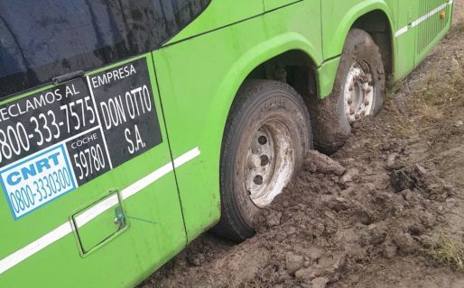 Según fuentes policiales, un chofer de la empresa VIA TAC dio aviso que se habían encajado en el desvío de ripio producto de las precipitaciones.