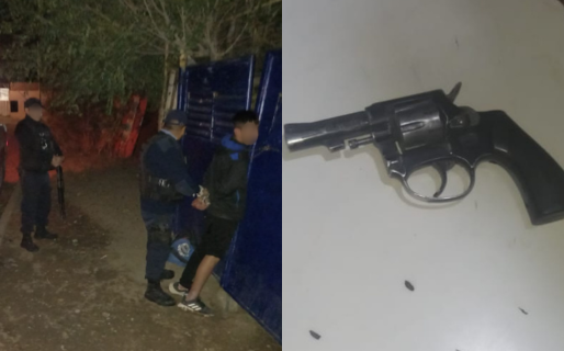 En esas circunstancias el imputado lo agarra de su pullover, extrajo de entre sus prendas un arma tipo revolver, calibre 22 mm. largo, y apuntando contra el pecho de la víctima le dijo “dame todo lo que tengas”. La víctima le manifestó que le daría todo lo que tenía y se puso sus manos en sus bolsillos, para luego lanzarse contra su agresor e intenta quitarle el arma.