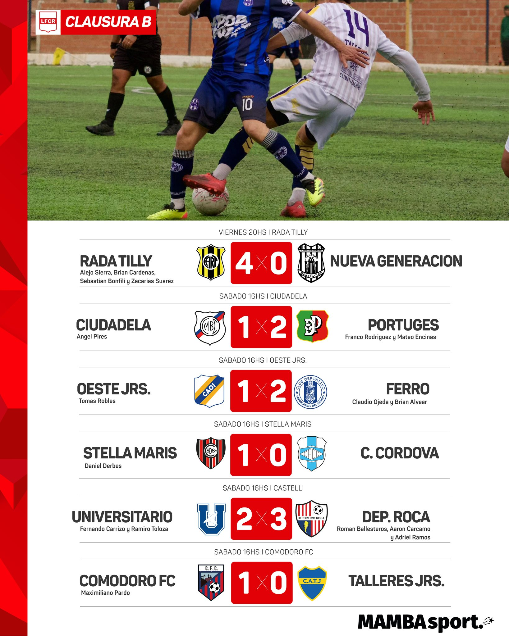 Por su parte, a Ferro igual le costó superar a Oeste Juniors en su visita a Valle C. Comenzó arriba el local con el gol de Tomás Robles, pero lo empató Claudio Ojeda de penal finalizando el primer tiempo. Para la segunda etapa Brian Alvear cumplió la Ley del Ex y puso arriba a Ferro, que todavía debe su fecha libre y solo tendrá la oportunidad de sumar 3 unidades más.