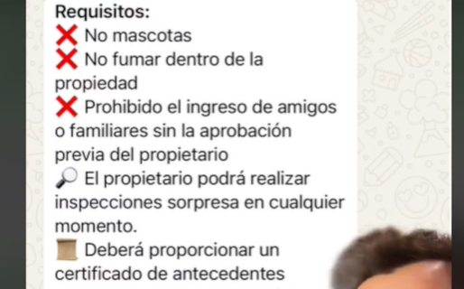 “Deberá pagar un depósito adicional de US$1.000 por cualquier daño potencial”, continuó asegurando que el mismo se devolverá al momento de la salida del inquilino, pero luego de una “inspección minuciosa por parte del locador”.