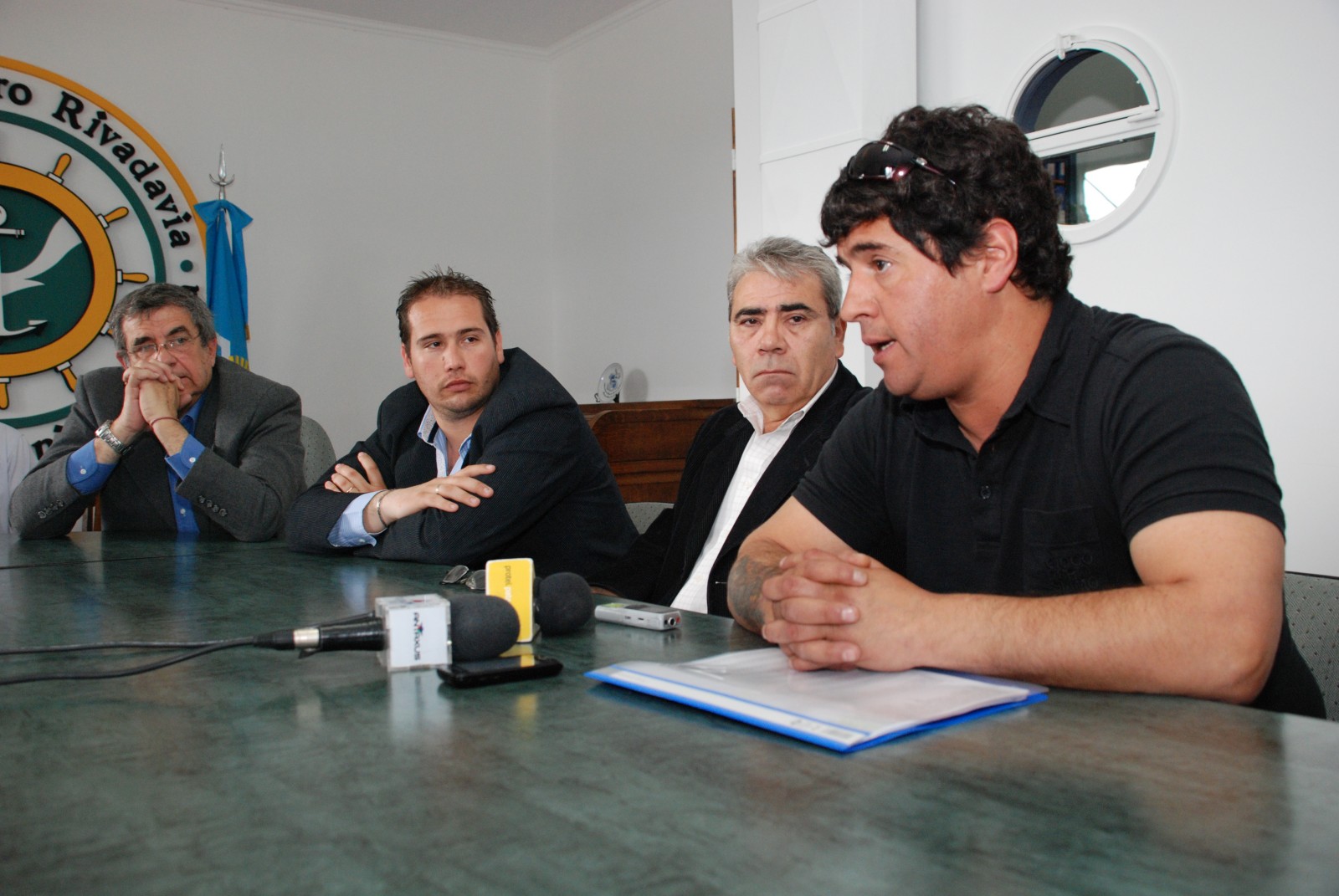 El secretario de Trabajo de la Provincia, Marcial Paz, junto al subsecretario de Promoción y Recuperación del Empleo, Juan Maldonado; el administrador del Puerto comodorense, Oscar Ruiz; y los representantes de la CGT, Gustavo Fita y Omar Castro; mantuvieron hoy una reunión con los delegados de SUPA (Sindicato Unidos Portuarios Argentinos), Juan Velásquez y Carlos Vallejos, a fin de avanzar en los puntos acordados la semana pasada cuando el grupo de trabajadores portuarios levantó la protesta que había iniciado algunas horas antes en reclamo por la falta de cupos pesqueros para la zona.