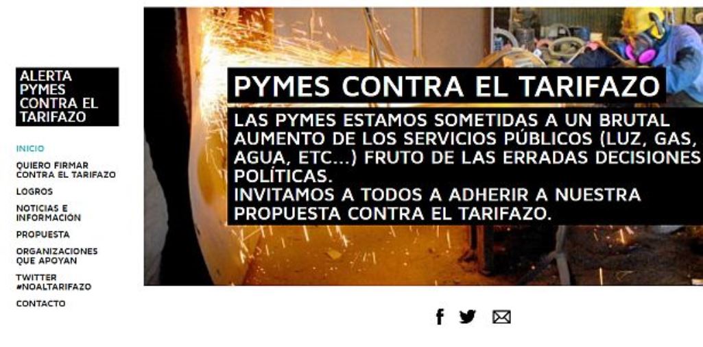 «Las Pymes estamos sometidas a un brutal aumento de los servicios públicos (luz, gas, agua, etc…) fruto de las erradas decisiones políticas. Invitamos a todos a adherir a nuestra propuesta contra el tarifazo», sostiene la web www.alertapymes.com desde la que se hace la convocatoria.