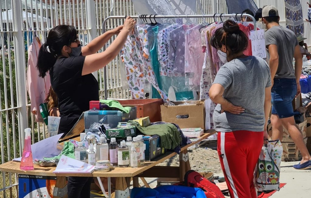 Allí no hay lugares definidos, a las 10 de la mañana comienzan a llegar las personas con sus mesas para instalar los puestos donde haya un espacio vacío, siempre respetando una distancia prudente con el siguiente stand. Todo sirve para exponer los productos o incluso sus servicios como peluquería o realización de esmaltado para uñas.