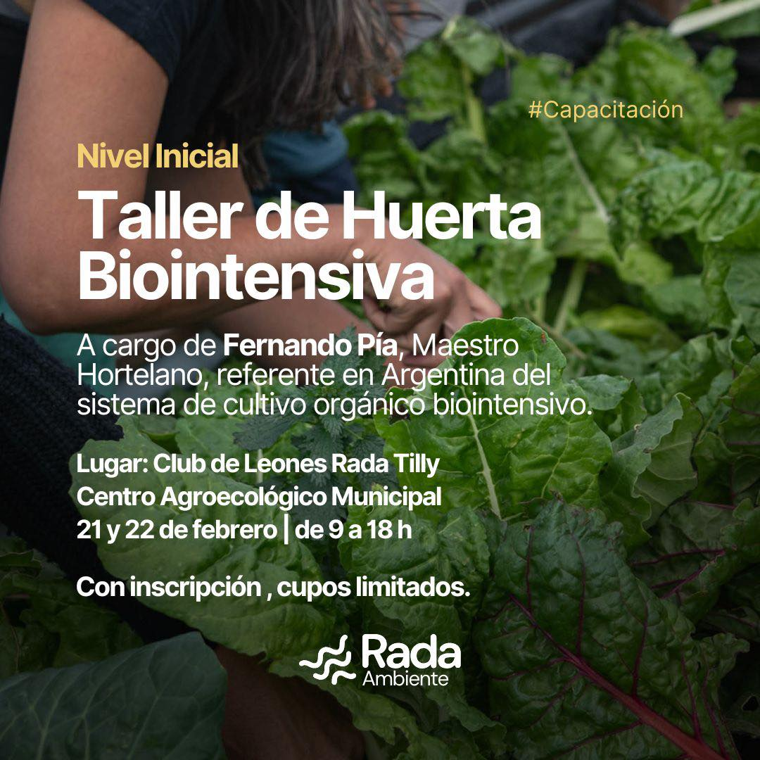 La Municipalidad de Rada Tilly, a través de la Secretaría de Ambiente, invita a la comunidad a participar del Taller de Huerta Orgánica Biointensiva – Nivel Inicial, una capacitación presencial que se realizará en dos encuentros consecutivos el sábado 21 y domingo 22 de febrero de 2026.
