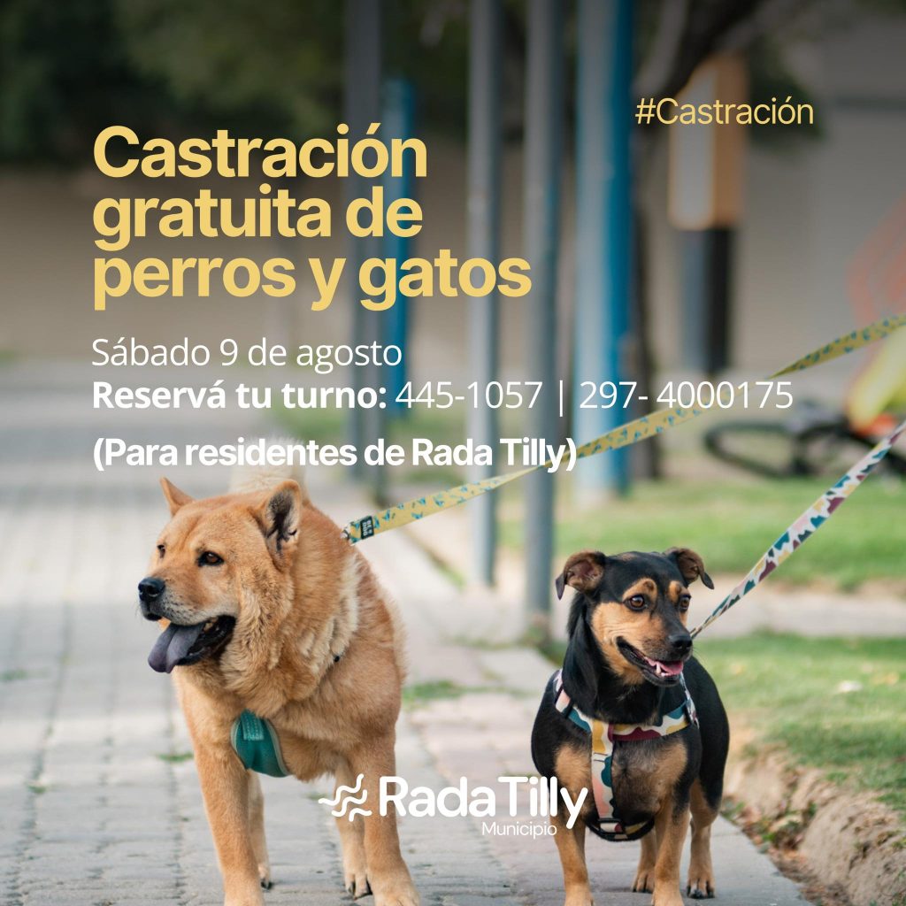 La Municipalidad de Rada Tilly informó que este sábado 9 de agosto se llevará a cabo una jornada de castración gratuita para perros y gatos, destinada exclusivamente a residentes de la ciudad.