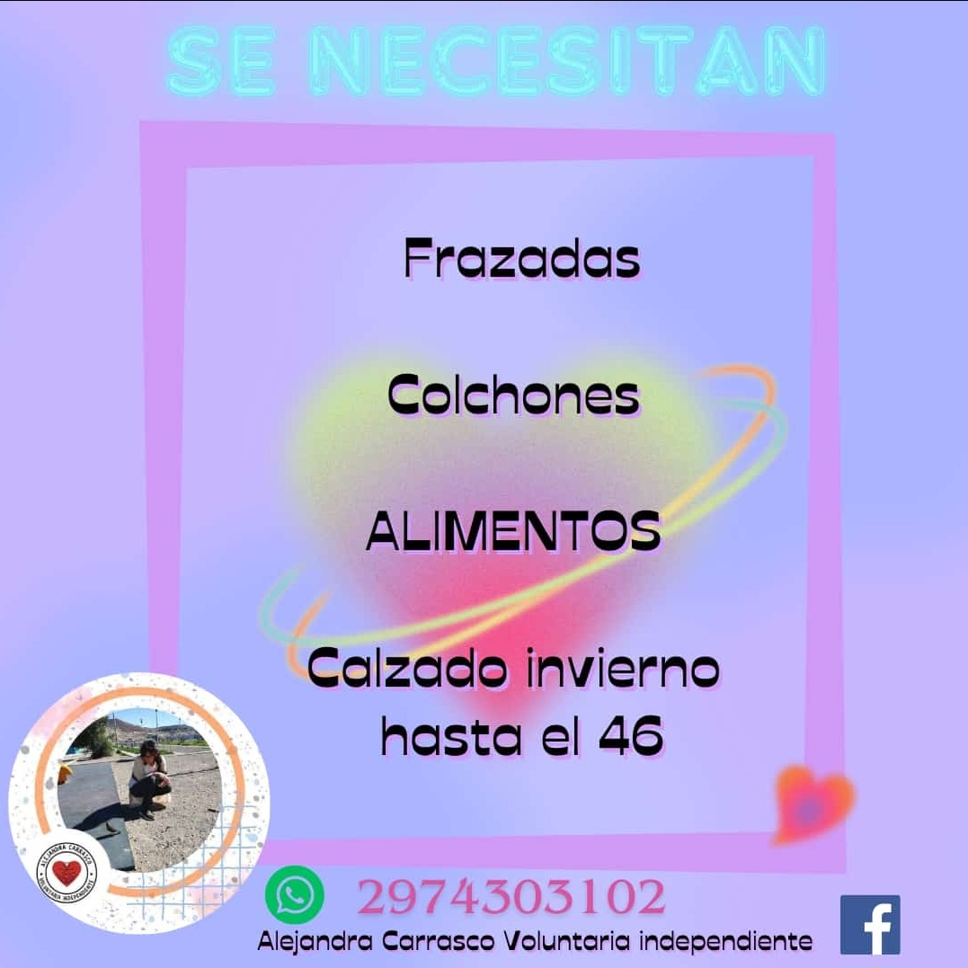 Quienes deseen colaborar con Alejandra pueden hacerlo al 2974303102 o al Facebook Alejandra Carrasco – Voluntaria Independiente.