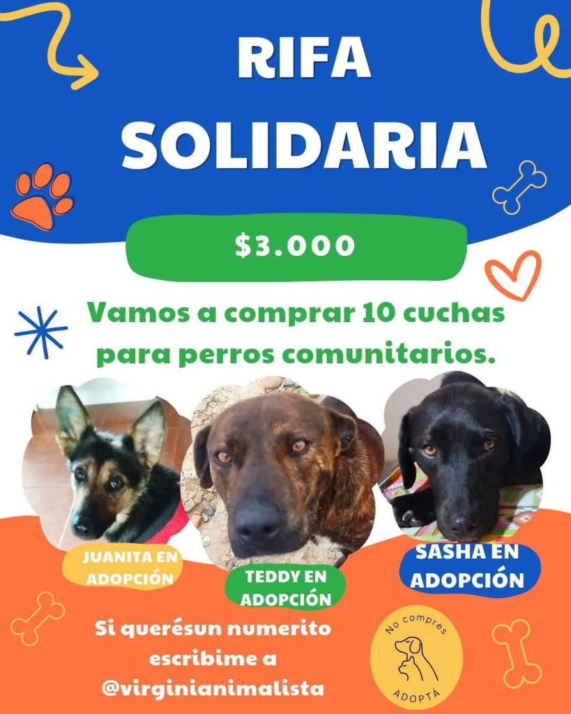 La iniciativa fue impulsada por la cuenta @virginianimalista, una referente local en el cuidado y rescate de animales en situación de calle. Además de colaborar con la compra de cuchas, la rifa busca visibilizar casos de perros que están en adopción, como Juanita, Teddy y Sasha, tres animales que esperan una familia definitiva.