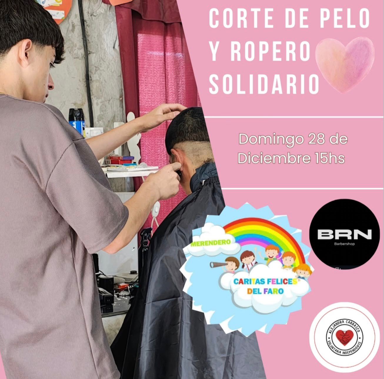 El evento está programado para este domingo 28 de diciembre a partir de las 15:00 horas. Esta acción surge a partir de una iniciativa de Bautista Barrionuevo, quien estará presente junto a BRN Barbershop para brindar el servicio.