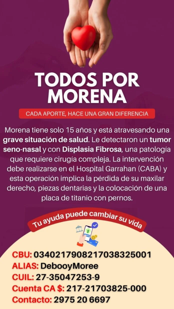 Frente a esta difícil situación, se inició una campaña para recaudar fondos que permitan costear tanto la cirugía como el tratamiento posterior que Morena necesitará para su recuperación.