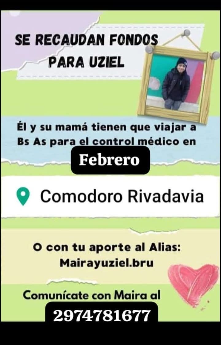 Quienes quieran colaborar pueden hacerlo al alias mairayuziel.bru o comunicarse al 2974781677 .