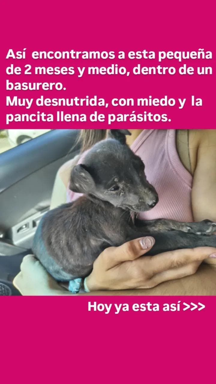 Una pequeña cachorra de aproximadamente dos meses y medio fue rescatada días atrás luego de ser encontrada dentro de un basurero en Comodoro Rivadavia. La perrita estaba muy desnutrida, asustada y con su pancita llena de parásitos.