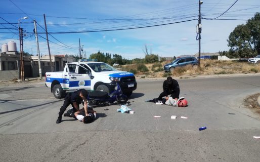 En Avenida Jukic -intersección con Teniente Cámara-, la motocicleta derrapó, cayendo conductor y acompañante al suelo. Tras descender del móvil, los empleados policiales precedieron a su aprehensión.