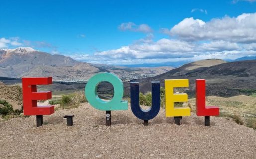 El cartel de «Esquel» camino a La Hoya, muy utilizado por vecinos y turistas para las fotos, se quedó sin una letra y ahora dice «Equel».