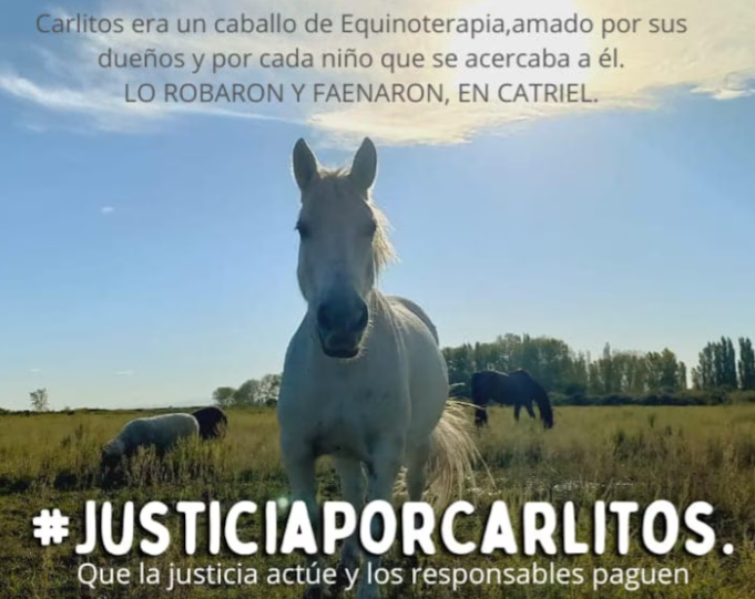 Carlitos tenía 16 años y comenzó a ser utilizado en tratamientos de equinoterapia desde que tenía 6. El pasado martes se lo llevaron y desde la asociación temían que podía ocurrir lo peor con él, por eso, a través de sus redes sociales hicieron un pedido desesperado: “Lo robaron hoy, por favor no lo maten”.