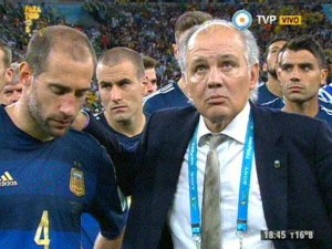 No pudo ser. Alejandro Sabella se quedó con la angustia en la garganta como los millones de argentinos y como los 23 jugadores que llevó a Brasil. Apenas finalizó el partido, todavía en el campo de juego, Pachorra se descargó: «Siento tristeza por no haber podido ganar, pero estoy orgulloso de la Selección. Se hizo un partidazo contra un equipo que no habia jugado alargue en la fecha anterior».