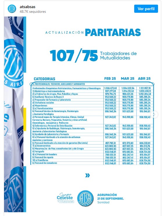 La Federación de Asociaciones de Trabajadores de la Sanidad Argentina (FATSA) acordó un aumento salarial del 5,2% para el personal asistencial, a pagarse de forma acumulativa en tres cuotas. Con los salarios de febrero, a pagarse en marzo, el aumento será del 1,9%.