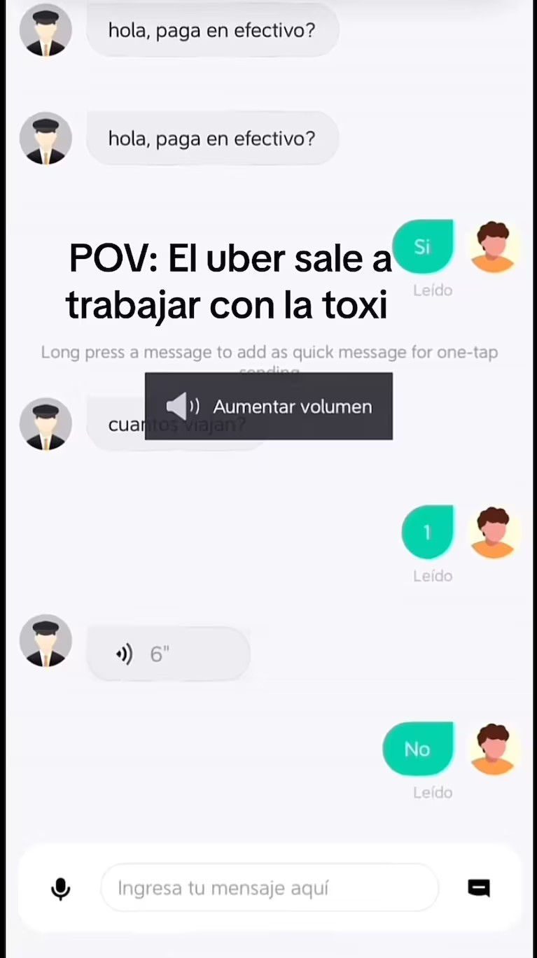 Sin embargo, todo cambió cuando el hombre le envió un audio explicándole la razón por la que se lo consultaba. “Hola, buenas noches Tadeo, te pregunto porque voy con mi mujer”, sostuvo el conductor. Seguido a eso agregó: “Avisame si te molesta, gracias”. En ese momento el chico le aseguró que no había problema.