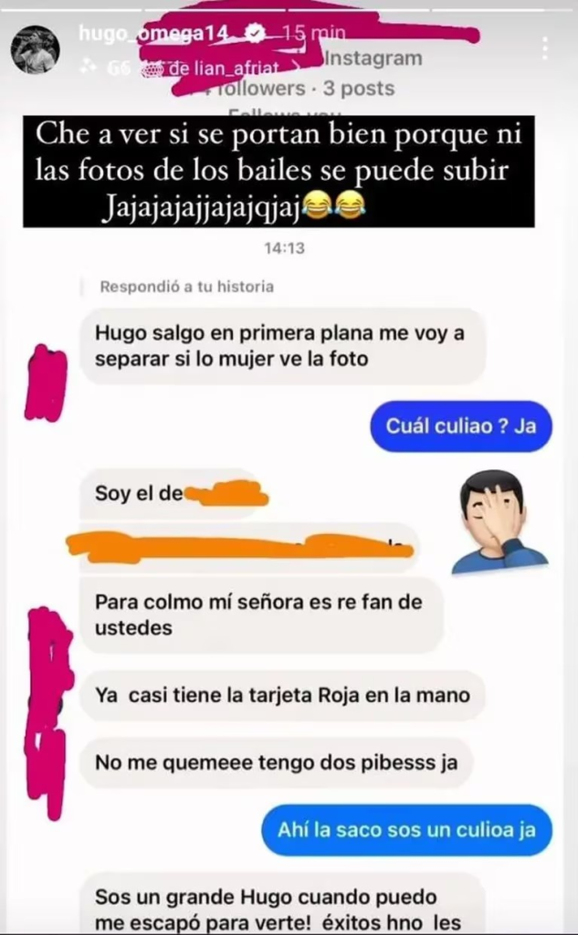 Ante este insólito y angustiante pedido de su fan, Hugo decidió eliminar el posteo en donde aparecía el joven. Luego, compartió esta situación en sus historias de Instagram y pidió, riéndose de la situación: “Che, a ver si se portan bien porque ni las fotos del baile puedo subir”.