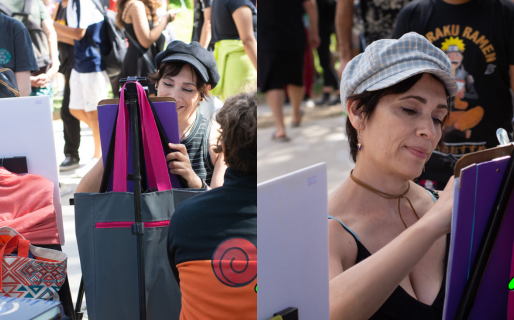 Esta decisión marcó el comienzo de su carrera como ilustradora en vivo, un campo en el que pronto se destacó. «Comencé a hacer caricaturas en vivo en Brasil. Y ahí ya me di cuenta por cómo la gente reaccionaba, que era un trabajo que encantaba mucho a la gente de allá, a niños, adultos«.