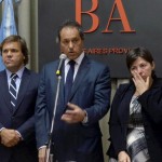 Scioli abrió la conferencia de prensa repudiando un ataque a un grupo de sus colaboradores, entre ellos su ministra de Economía, Silvina Batakis. «Le han arrojado un ladrillo», precisó, y dijo que más allá de la lesión que le provocó, le dejó también «una herida en el corazón».