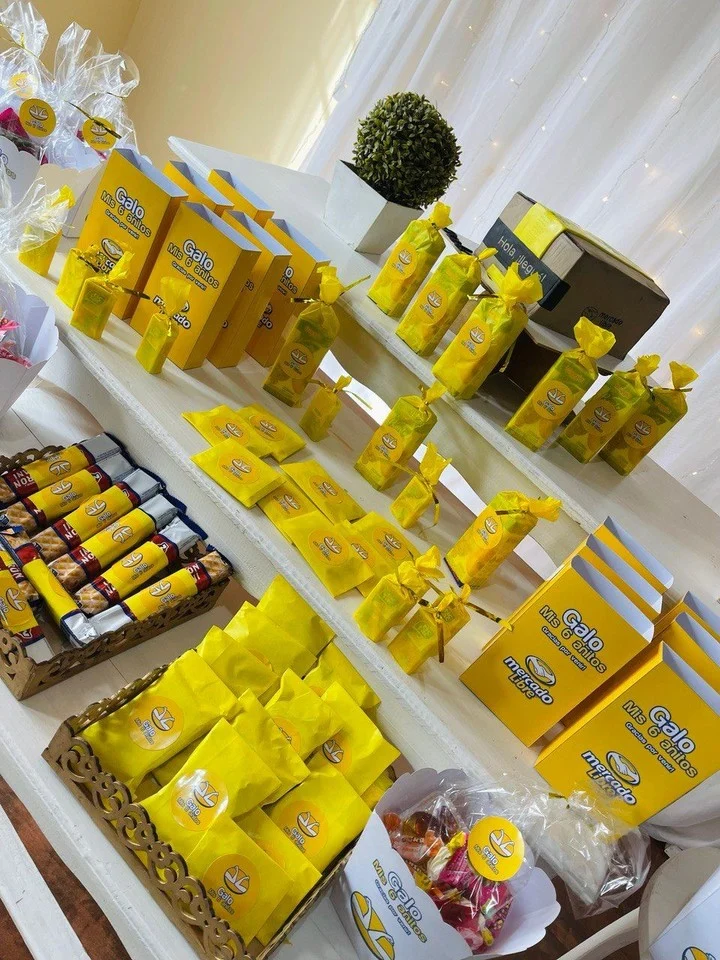 Desde la torta que mandaron a hacer especialmente, con forma de caja y la frase «Hola, ¡llegué!», simulando un paquete de envíos de la plataforma de compra venta online, hasta las bolsitas con golosinas para los invitados. Todo con stickers y el logo de la famosa marca.
