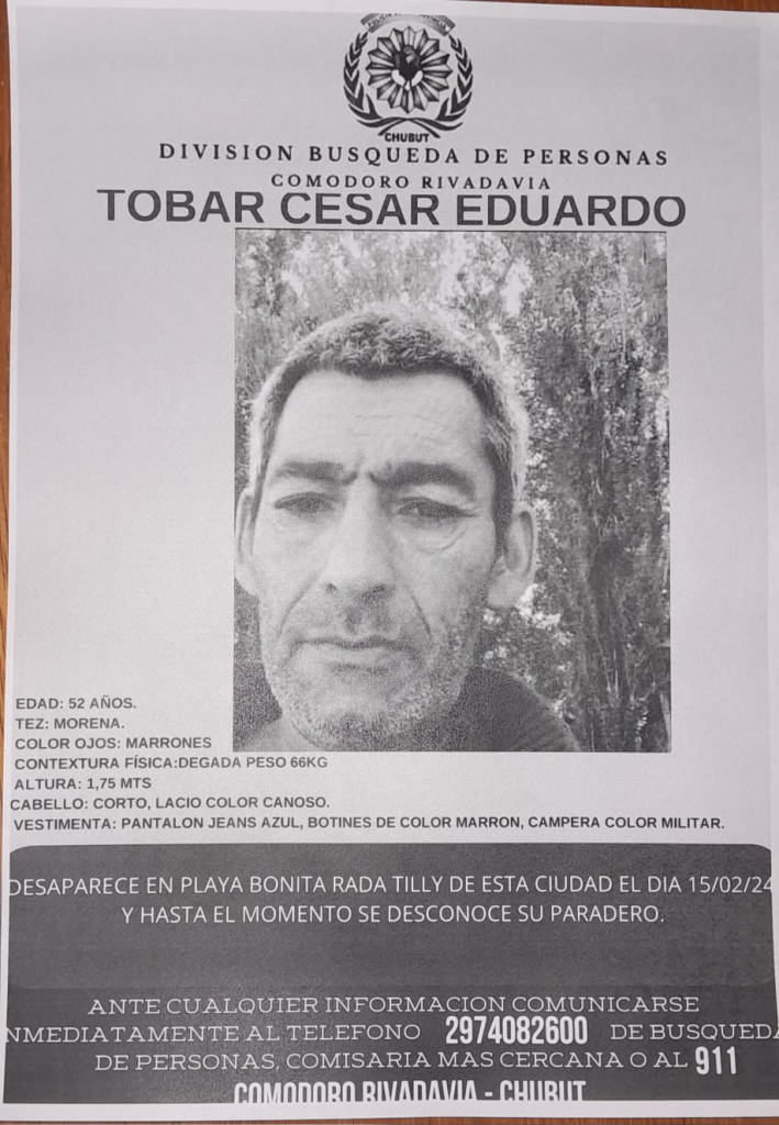 Ante cualquier indicio o pista que pueda llevar al paradero de Tobar, se solicita a la comunidad comunicarse de inmediato con la División Búsqueda de Personas al número de teléfono (297) 154-082600. Asimismo, se pueden utilizar los números de emergencia 101 o 911, o dirigirse a la comisaría más cercana.