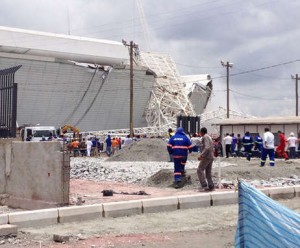 Falló en plena construcción del nuevo estadio del Corinthians que se usará para Brasil 2014, y se desplomó parte del techo y varios andamios. El saldo fue de tres muertos. Todo cayó sobre lo que iba a ser la pantalla Led.