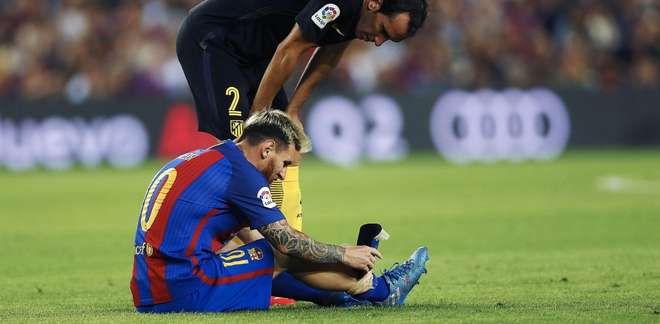 Lionel Messi sintió una molestia en su pierna derecha durante el partido que enfrentó a esta tarde Barcelona con Atético Madrid y finalizó empatado a un gol.