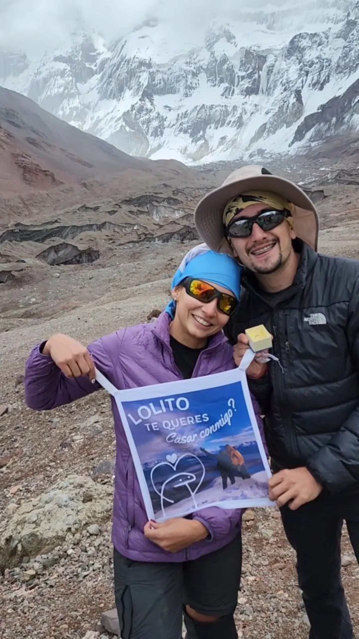 La relación de Fiorella y Lorenzo empezó y evolucionó gracias a la montaña. Este deporte no solo fue el punto de partida para sus charlas, con la naturaleza de fondo se pusieron de novios y se comprometieron. La gran pregunta (”¿Te querés casar conmigo?”) la hizo Fio, a 4200 metros sobre el nivel del mar y de espaldas al Aconcagua. El “Sí, quiero” fue el punta pie inicial para una aventura que en un principio ninguno de los dos creía posible.