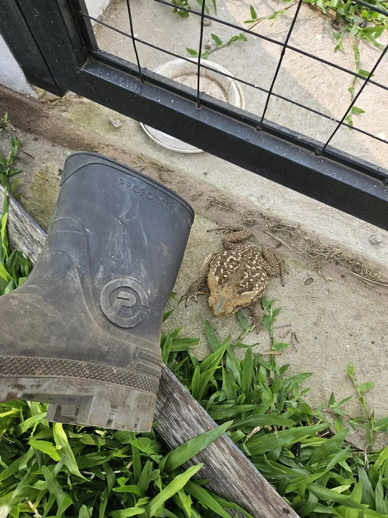 Según relató en la plataforma, el joven se fue a poner el calzado para la lluvia sin medias y se llevó una desagradable sorpresa: dentro de las botas había un sapo escondido.
