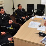 El secretario de Seguridad, José Glinski, se reunió con el jefe de la delegación Rawson de la Policía Federal, comisario Néstor Duarte, el segundo jefe, subcomisario Marcelo Velásquez, y el sargento primero Víctor Chingoleo, en la Casa de Gobierno en el marco de las reuniones que viene manteniendo la cartera de seguridad con las fuerzas en toda la provincia.