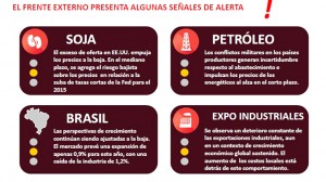 Son las cuatro «luces amarillas» que complican a la Argentina en el frente externo. La caída del precio de la soja y un menor crecimiento de Brasil son algunas de las señales de alerta que se encienden para una economía recesiva. La falta de dólares será una de las principales problemáticas.