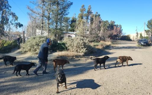Patricio vive en Kilómetro 14, en Comodoro Rivadavia, y se las arregla como puede para alimentar a seis perros que adoptó de la calle. A pesar de su situación económica, no deja de cuidar a sus animales, quienes dependen completamente de él.