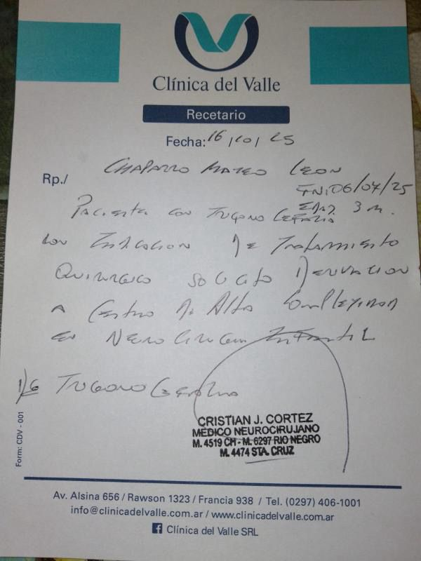 “Su cerebro tiene que crecer, y si los huesos ya están soldados, eso podría traer complicaciones muy grandes. Por eso debe viajar de urgencia a Buenos Aires que es un lugar de alta complejidad que acá en Comodoro lamentablemente no hay», sostuvo.