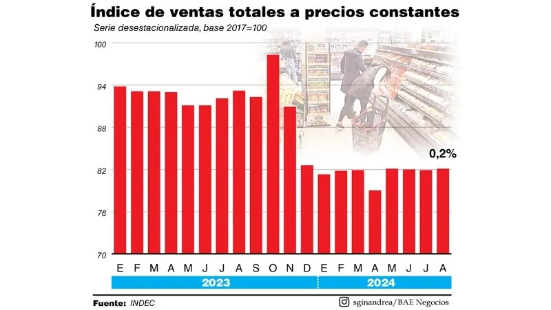 El último mes mostró una caida del consumo que alcanzó el 20,3% interanual y que representa la mayor baja desd 2016 superando incluso el freno que se produjo durante la pandemia de Covid en el 2000. Los principales rubros afectados fueron las ventas de supermercados y el consumo de alimentos, que marcan una disminución en el acceso a los artículos de primera necesidad.