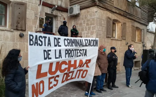 La jornada judicial de este martes finalizó con un breve acto frente al Juzgado Federal, convocando a seguir en unidad contra la criminalización de la protesta.