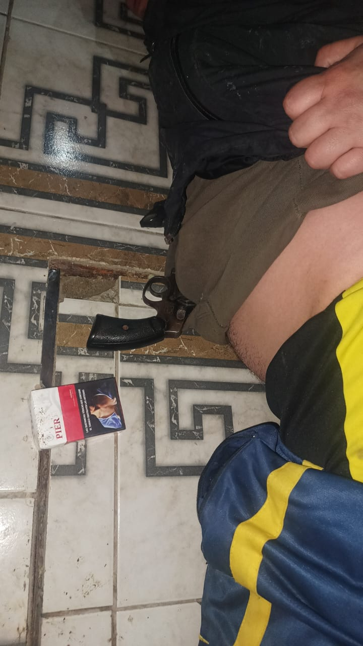 Tras realizar el palpado de seguridad, los uniformados lograron constatar que uno de los detenidos llevaba consigo un arma de fuego, tipo revolver color gris oscuro, por lo que inmediatamente se procede a su aprehensión a los fines de resguardad la integridad física de los intervinientes.
