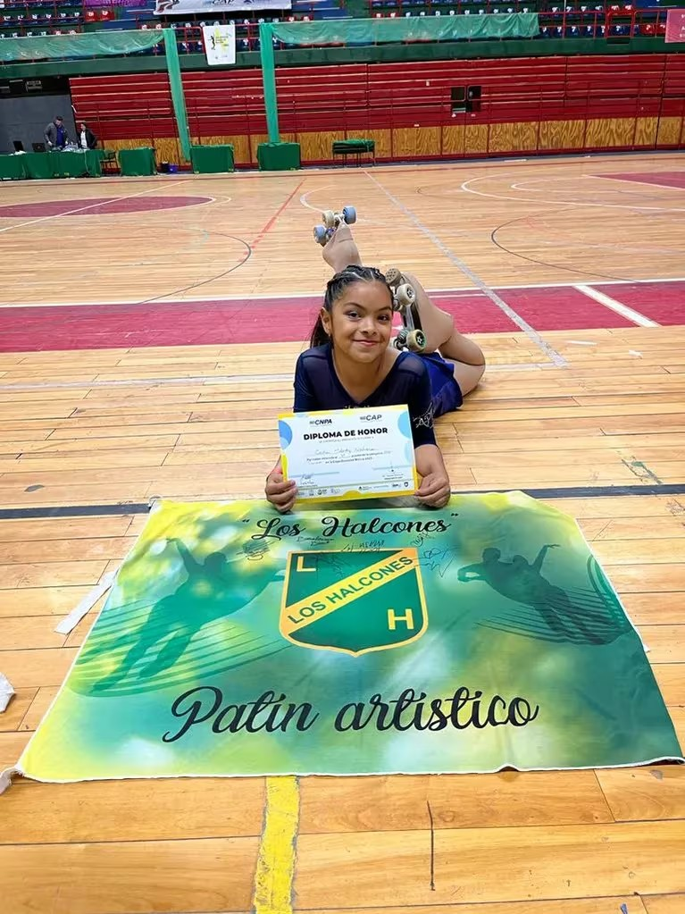 Melody comenzó a patinar en el club Los Halcones hace dos años y desde ese momento conoció su amor y pasión por el deporte. Su mamá contó que en ese tiempo pudo comprarle los patines profesionales usados, ya que el presupuesto no le alcanzaba para unos nuevos.