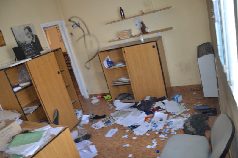 En cuanto a los bienes materiales, indicó que “lo que hicieron ellos fue destrabar la puerta del frente nada más. Se rompió la cerradura pero sólo eso. El lugar estaba vacío por suerte, no había nadie. Yo estuve mirando ahí”, dijo sobre la evaluación de lo desordenado.