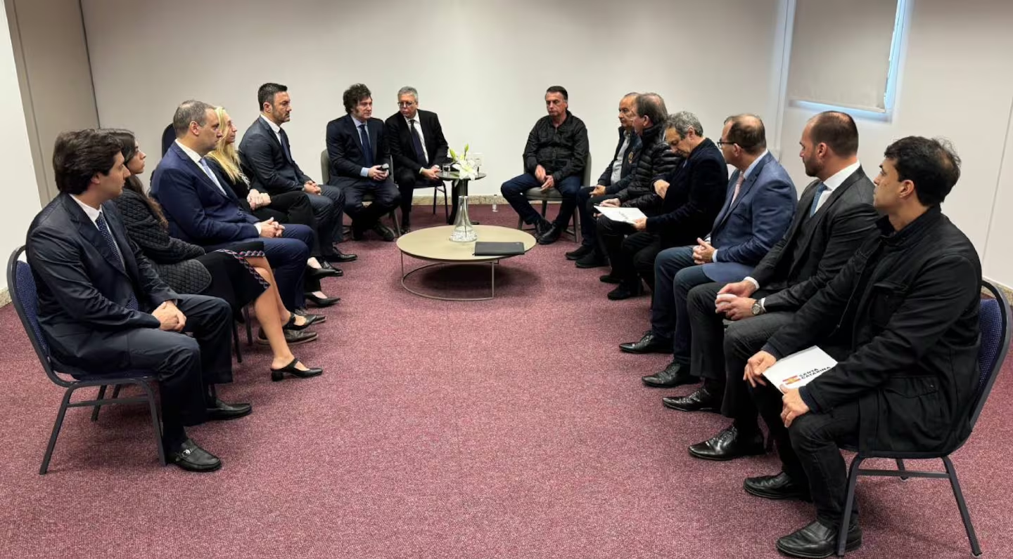 El Presidente se reunió luego con el exmandatario, su hijo -el diputado, Eduardo Bolsonaro-, el gobernador de San Pablo, Tarcísio de Freitas, y su par de Santa Catarina, Jorginho Mello, en un encuentro en el que dialogaron sobre la importancia de facilitar el comercio y en el que le manifestaron a Milei el apoyo a los cambios en la Argentina, según información oficial. En el encuentro participaron además la secretaria General de la Presidencia, Karina Milei, el ministro de Defensa, Luis Petri, y el vocero presidencial, Manuel Adorni.
