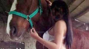Con el nombre de “La chica de la montada”, se publicaron en Facebook fotografías de una mujer semi desnuda junto a un caballo que pertenecería a la División Abigeato de Trelew.