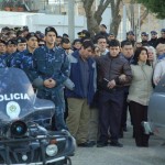 Además de decenas de efectivos policiales, se encuentran en el lugar el ministro de Gobierno de la provincia, Javier Touriñán, y el viceintendente de Comodoro, Carlos Linares.
