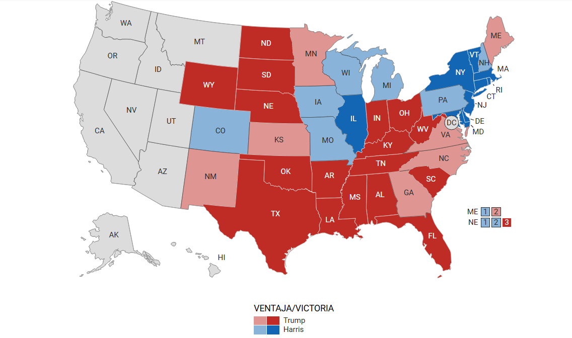 Lo cierto es que en la costa este del país la victoria fue de Kamala Harris y en el centro lidera Donald Trump, mientras que en el oeste ya comienzan a conocerse los primeros resultados.