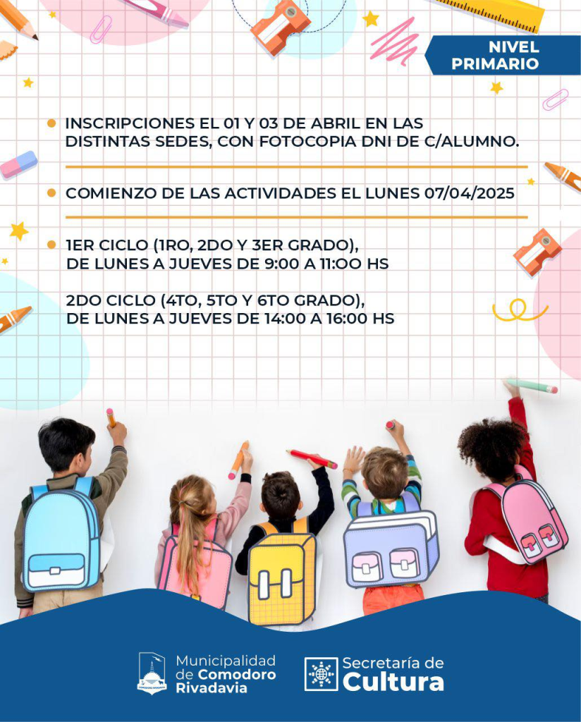 2do ciclo (4º, 5º y 6º grado) → Lunes a jueves | 14:00 a 16:00 hs