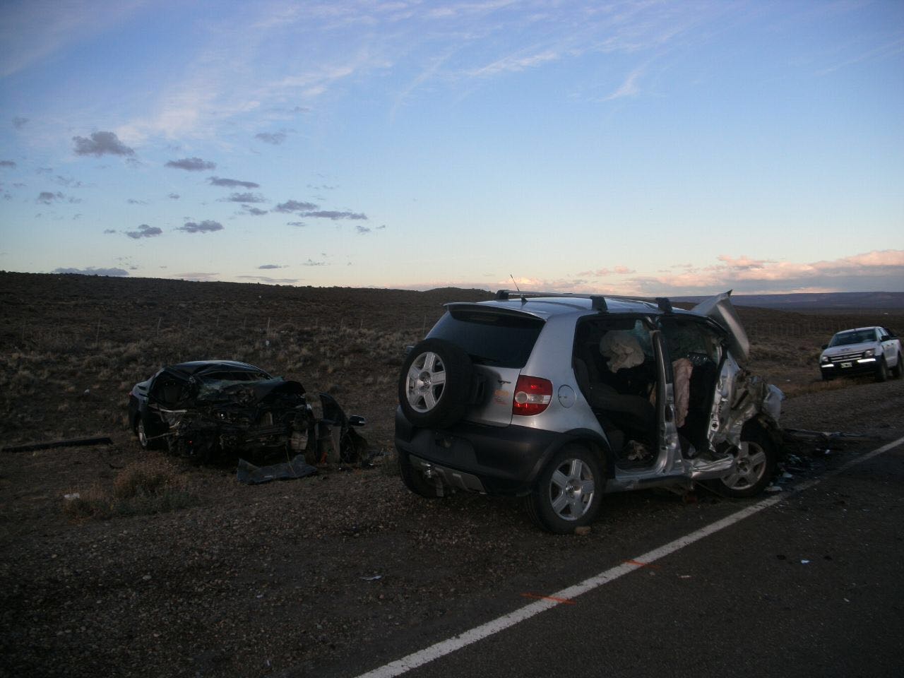 Fue en cercanías de Cerro Dragón, yendo hacia la localidad de Sarmiento. Los vehículos que protagonizaron el siniestro fueron un Toyota Corolla y un VW Cross Fox, que impactaron frontalmente con las trágicas consecuencias mencionadas.