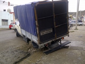 Un trabajo sobre la red de agua que no fue bien obturado tras el pozo realizado junto a una cuneta de calle Alvear al 900, provocó el hundimiento de un camión que realizaba un trabajo particular para una conocida firma local de muebles y electrodomésticos en la mañana de hoy.