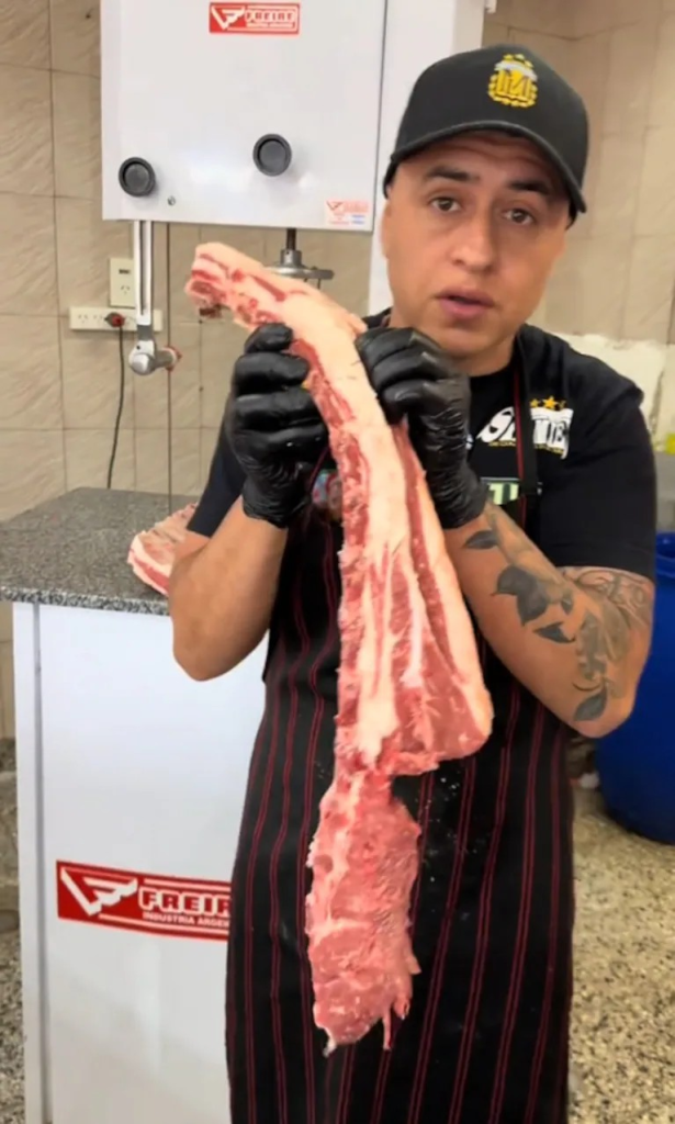 A través de la cuenta @maritolaurens compartió la publicación en la plataforma. El tiktoker agarró un costillar y explicó: “Está hermoso, pero la punta del asado tiene mucha grasa, entonces cuando vayas a comprar uno tenés que pedir que sea despuntado”. Acto seguido, cortó el pedazo de carne y mostró que tenía bastante grasa: “Esto no lo vas a llevar y por eso no lo vas a pagar”.