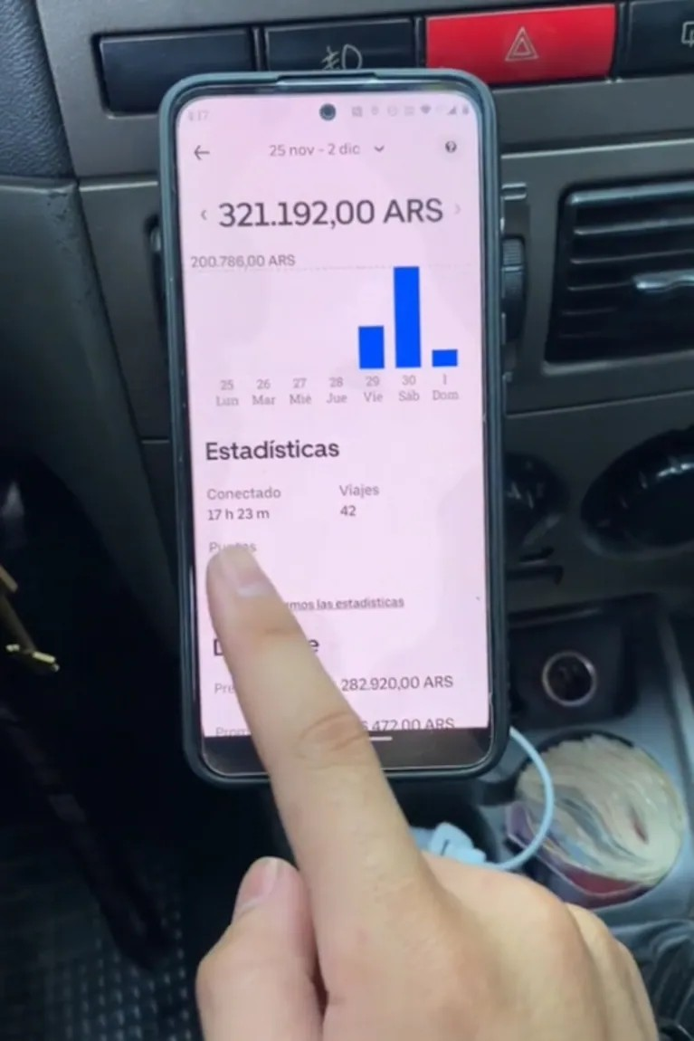 En total, ganó durante el fin de semana $321.192, en el que trabajó 17 horas y media con un total de 42 viajes. La publicación llegó a 1,8 millones de reproducciones y 69 mil “me gusta”. Los comentarios no tardaron en llegar a la publicación.